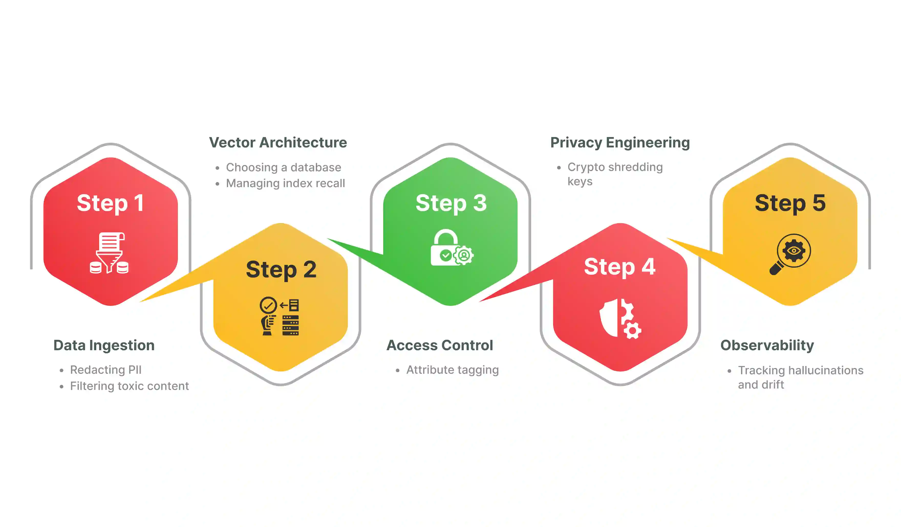In this step, companies use techniques like automated sanitization pipelines. These tools remove sensitive data before it turns into a vector. This keeps the vector database clean. It also stops the model from learning things it should not know.